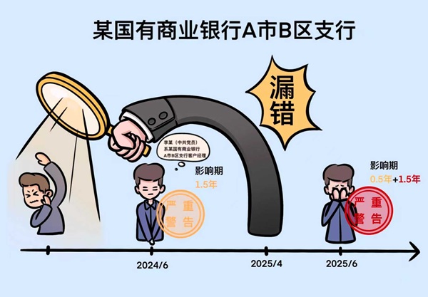 结合本案,某国有商业银行A市B区支行纪委经审查,于2025年6月作出给予李某严重警告处分的决定。李某受到严重警告处分一年后,又受到严重警告处分,原处分未执行完的半年影响期应当与新受处分的一年半影响期合并计算,并在其处分决定中明确影响期为新的党纪处分生效之日起二年。( 杨一龙 张晓琳)