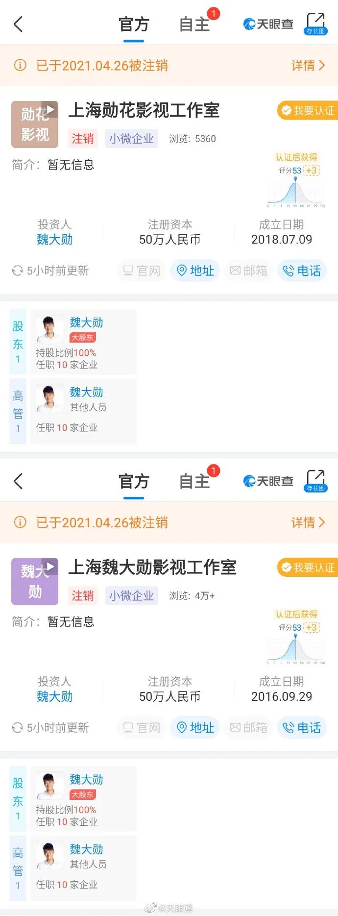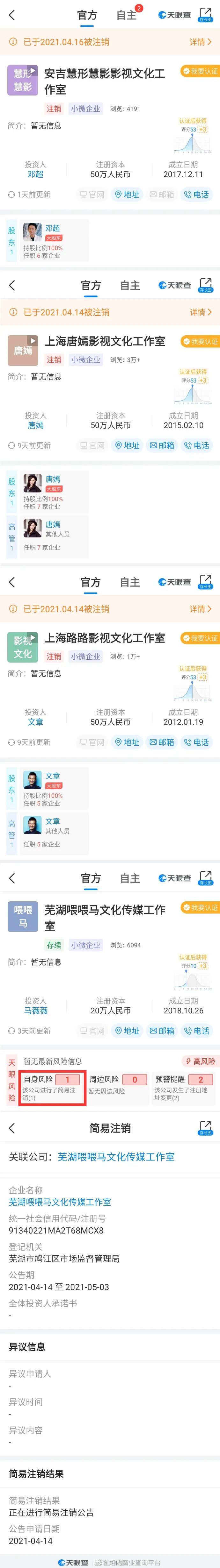 明星工作室接连注销